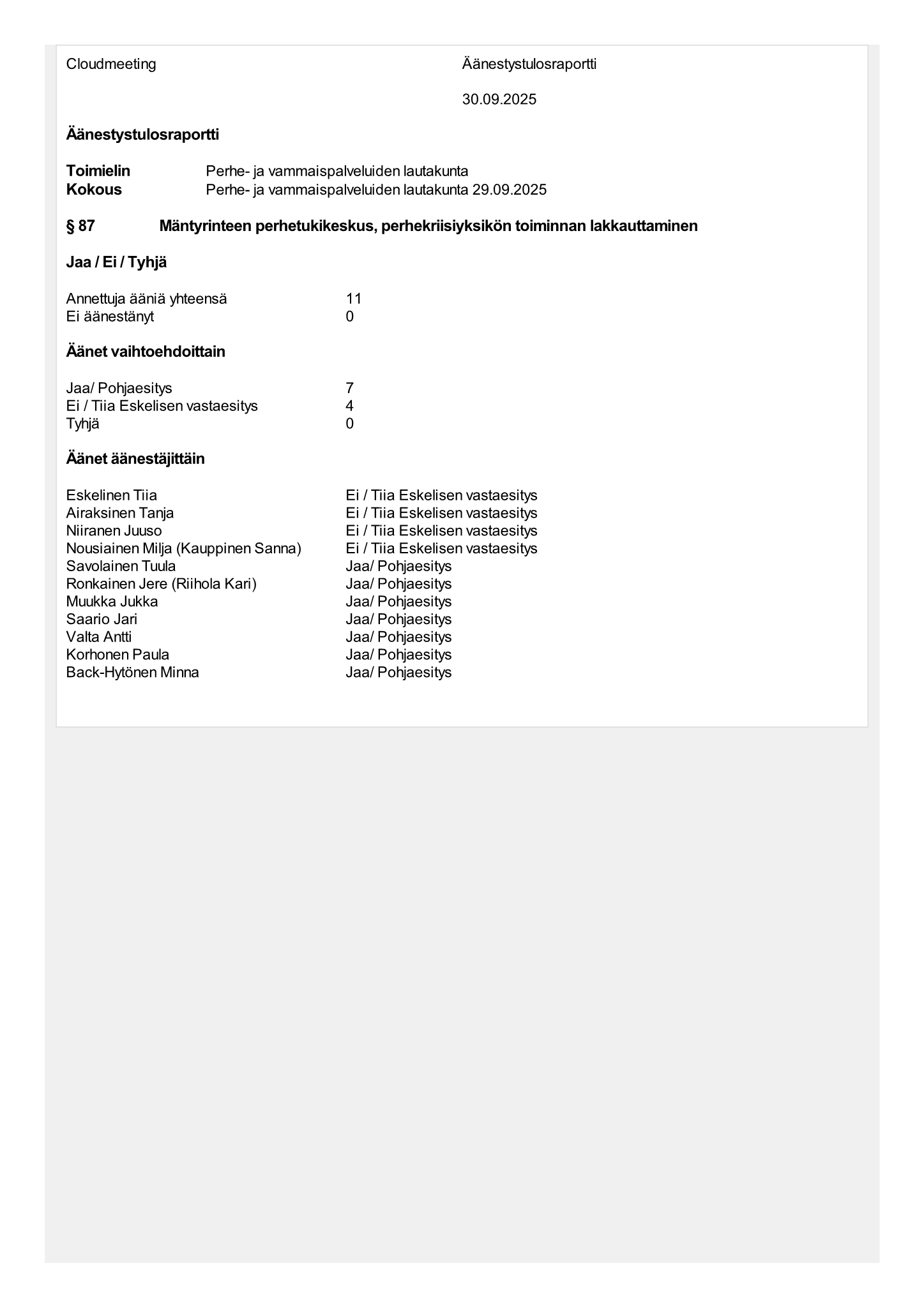 | Oheismateriaali 1Äänestystulosraportti § 87, perhe- ja vammaispalveluiden lautakunta (png 126.15 kb) |