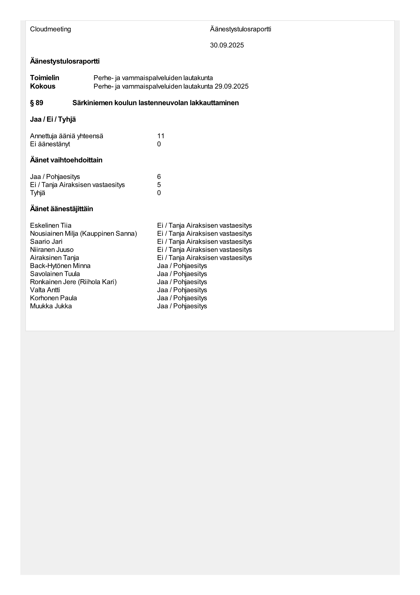 | Oheismateriaali 1Äänestystulosraportti § 89, perhe- ja vammaispalveluiden lautakunta (png 127.00 kb) |